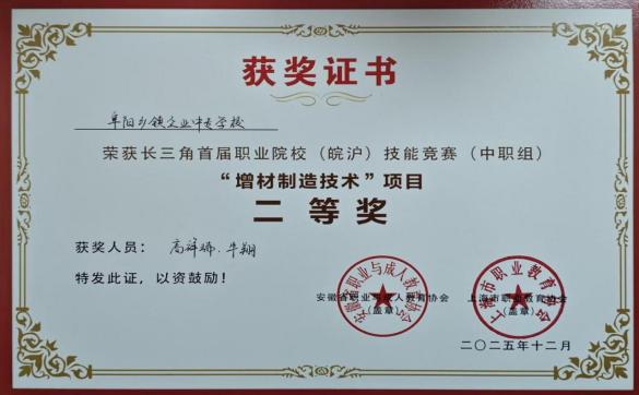 图22.长三角首届职业院校(皖沪)技能竞赛(中职组)“增材制造技术”项目中,获奖证书