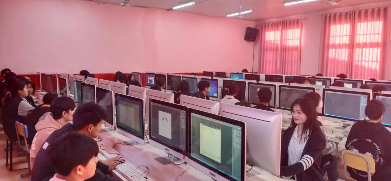 机房二:同学们在认真的思考制作设计图